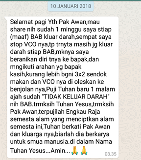 Dengan memakai VCO secara tepat dan benar, wasir Anda bisa kempes dan sembuh seperti contoh di screenshot ini.